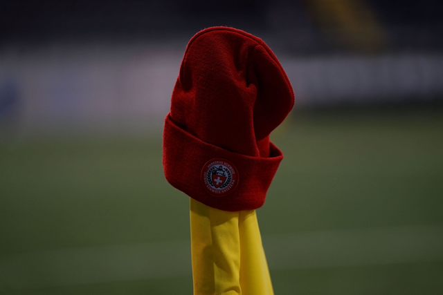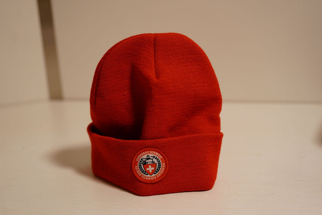 Rote Mütze mit gesticktem Fankurve Schweiz Badge